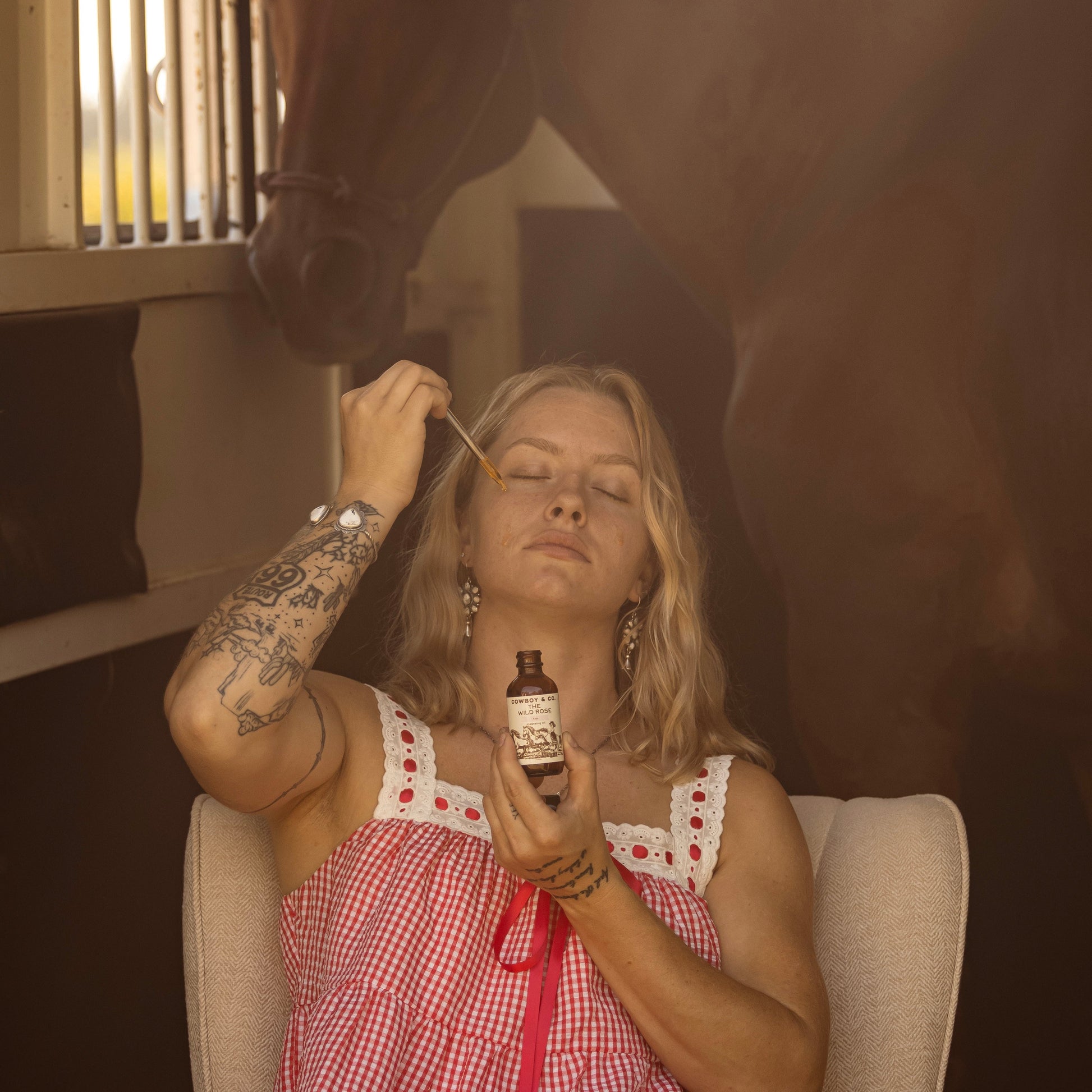 Our Rose Cleansing Oil is a lightweight blend of jojoba, rosehip, and sweet almond oils infused with whole rose petals. Designed to mimic the skin’s natural feel, it melts away impurities while leaving skin soft, refreshed, and balanced. With no essential oils, added fragrance, or preservatives, this simple, non-foaming cleanser is gentle enough for all skin types. Cowgirl-crafted in Wyoming in small batches.
