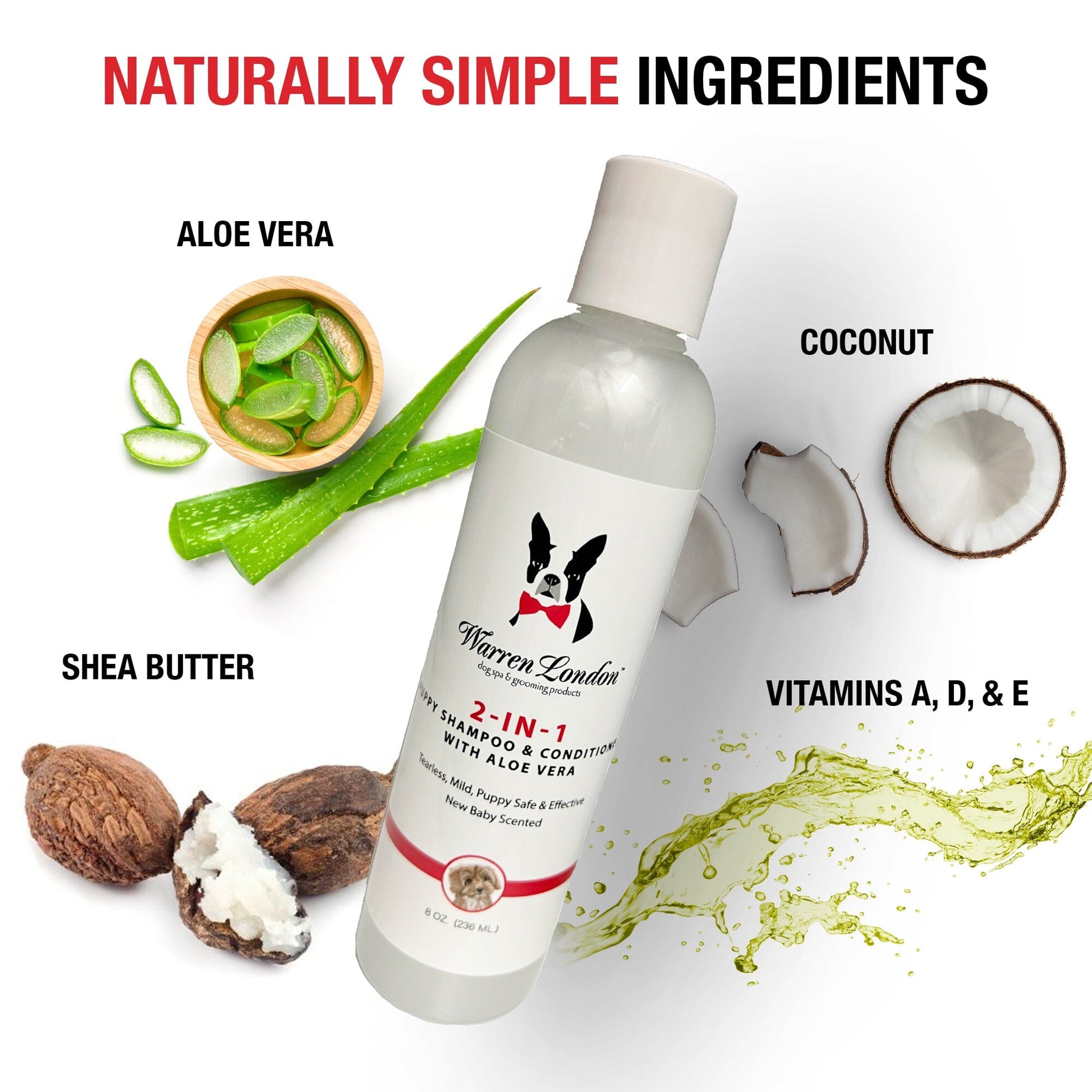 - 2-in-1 Puppy Shampoo & Conditioner with Aloe: Gently cleanse and condition your puppy's coat with our all-in-one formula enriched with aloe to leave fur soft, shiny, and tangle-free.