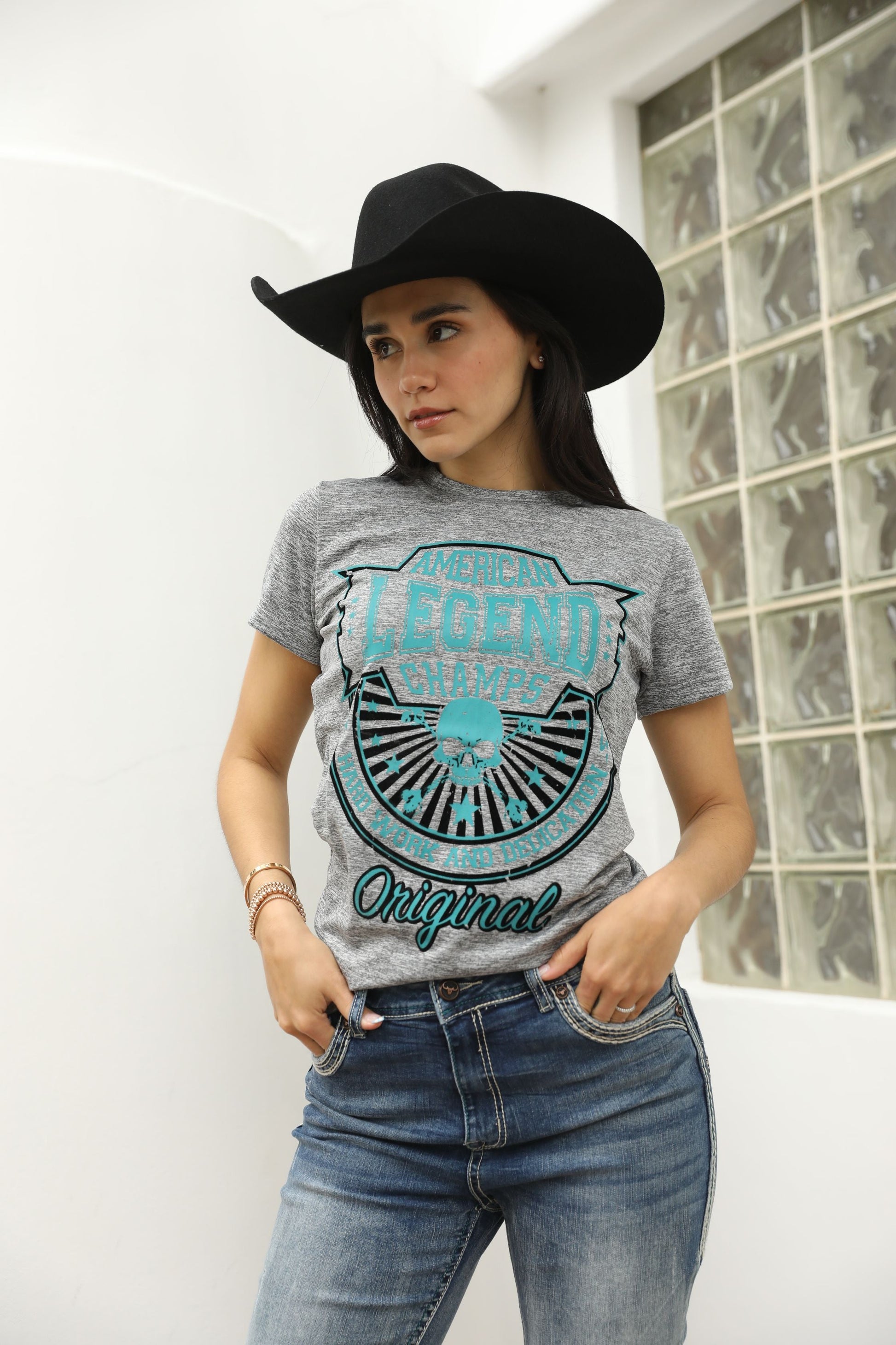 Women's Cotton American Legend Graphic Print Light Gray T-shirt