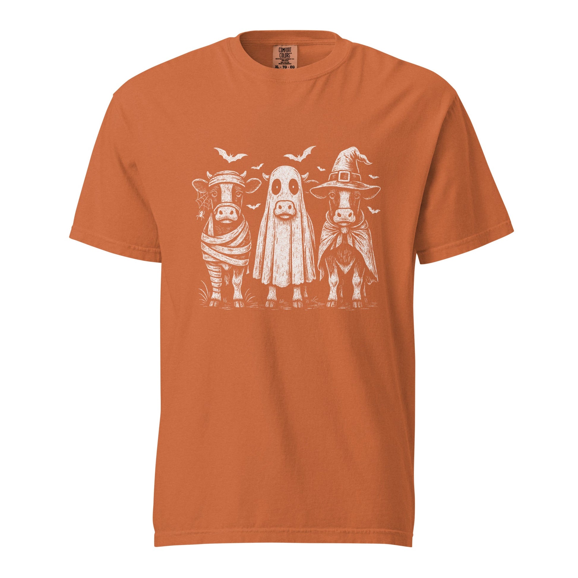 Featuring a playful graphic of a mummy cow and cattle in a witch hat, this shirt combines humor, comfort, and style in one unforgettable design. Whether you’re trick-or-treating with the kids, heading to a fall festival, or just love cute and quirky farm-themed graphics, this tee makes the perfect addition to your seasonal wardrobe.