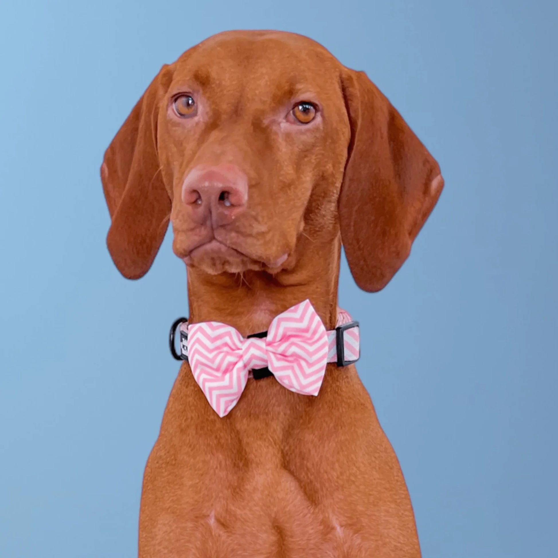 Zig Zag Wag Dog Collar & Free Bow Tie - Pastel Pink